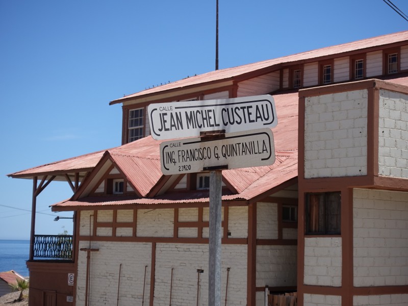 It looks like the street sign has a spelling error. Jean Michel is son of Jacques Cousteau, the great ocean explorer who called the Sea of Cortez "The World's Aquarium". Line his father, Jean Michel has been a great voice for protecting the oceans.