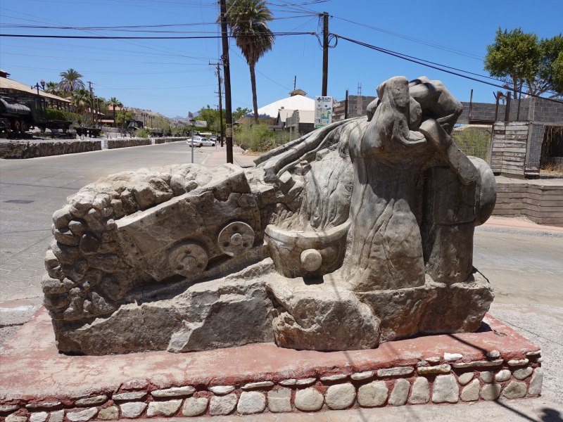 Outside the museum, there is a sculpture illustrating some aspects of mining: