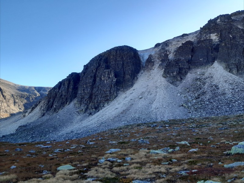 Getting down from Digerronden was slow and tiring because of all the loose rocks. Once we made it to the valley, we still had 12.5 km to hike back to camp. Here is a picture from the way back: