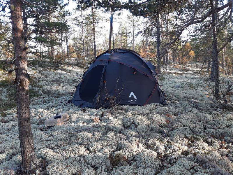 The first night was cold with frost on the tent in the morning, but even as the oven died out in the evening we were comfortable in our winter sleeping bags.
