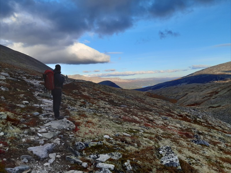 We still had a lot of work ahead of us. We had 17 km of hiking in the long valley on this other side of the mountain range to get back to the camp with Ulrik's big tent and the nice woodstove waiting for us. All day we were carrying full backpacks of camping gear from a night spent in the mountains.