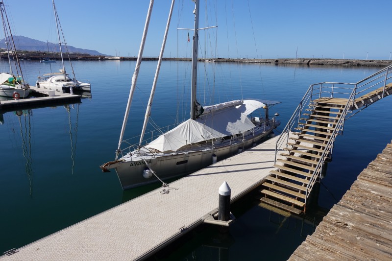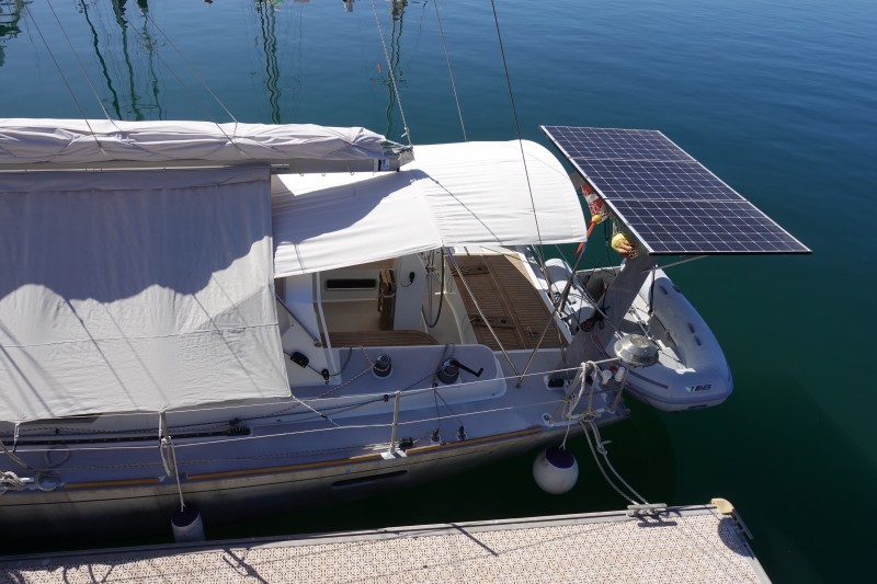 On the way north Bjarne had spent time sewing a new bimini (the fabric that covers the cockpit, so we can sit in the shade). He also made a new cover for the mainsail that is a lot smaller and more streamlined that the old green one we had previously: