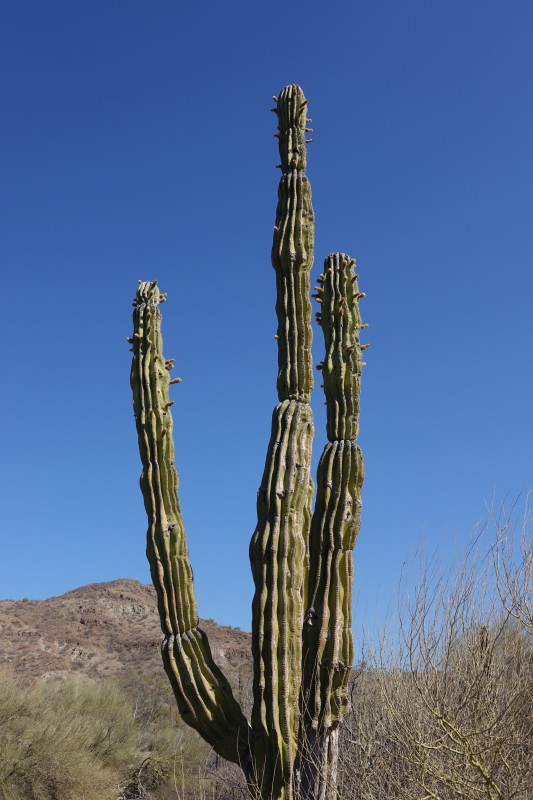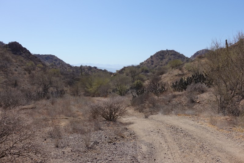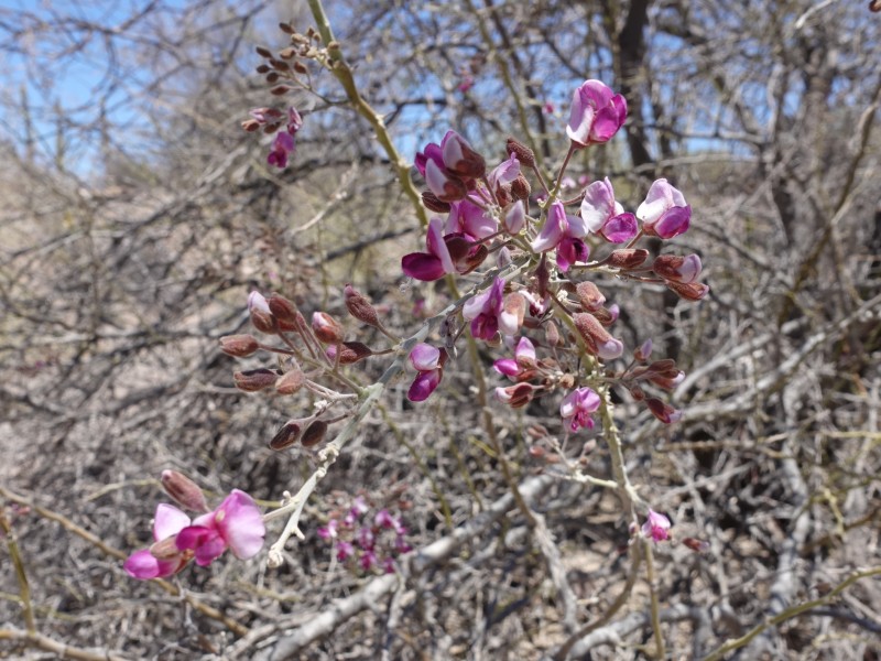 Continuing north, we stopped at Bahia Santo Domingo, right at the entrance to Bahia Concepcion. We had been there before and gone for a short hike but this time we decided to go all the way to a beach on the other side. On the way we saw bushes with lovely flowers: