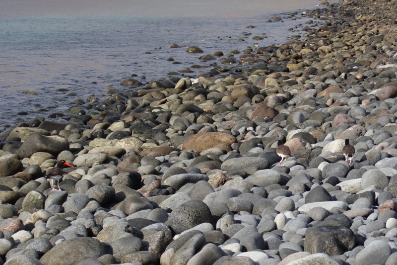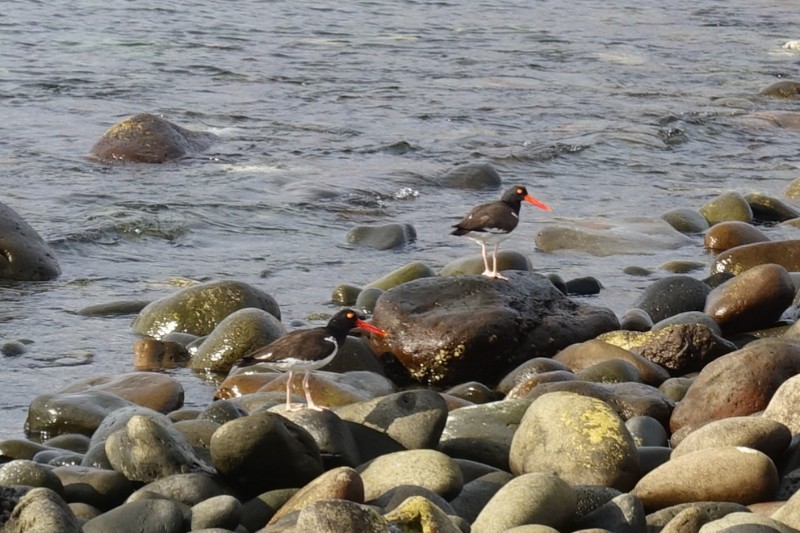 They're hard to see in the image above, but have a bright red beak and in real life there is a lot of high pitched shrieking involved whenever oyster catchers are around, so that makes it easier to spot them.