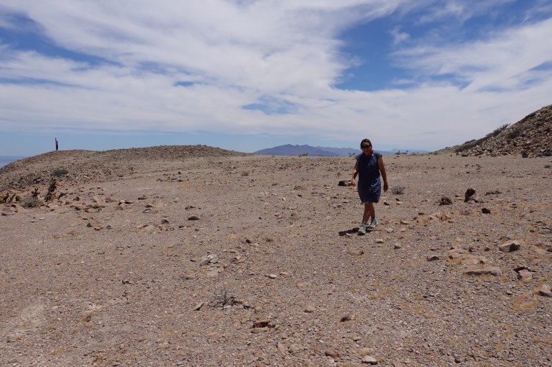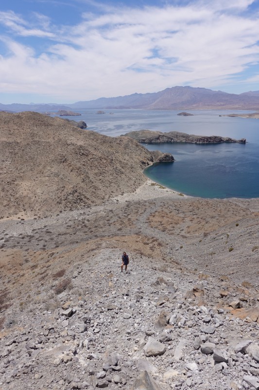 From Isla Ventana we sailed a few miles further north and anchored in a narrow canal between two islands. The larger island had a little peak that we decided to climb. Here is Felicie halfway up the hill with Amanda just visible in the middle of the picture: