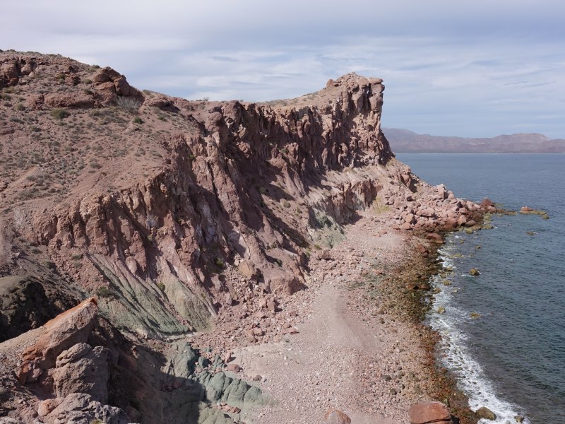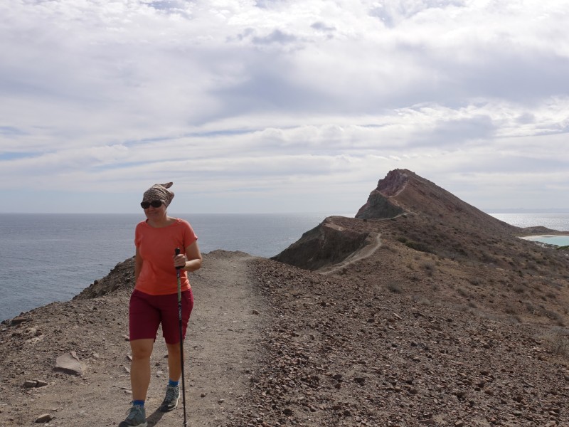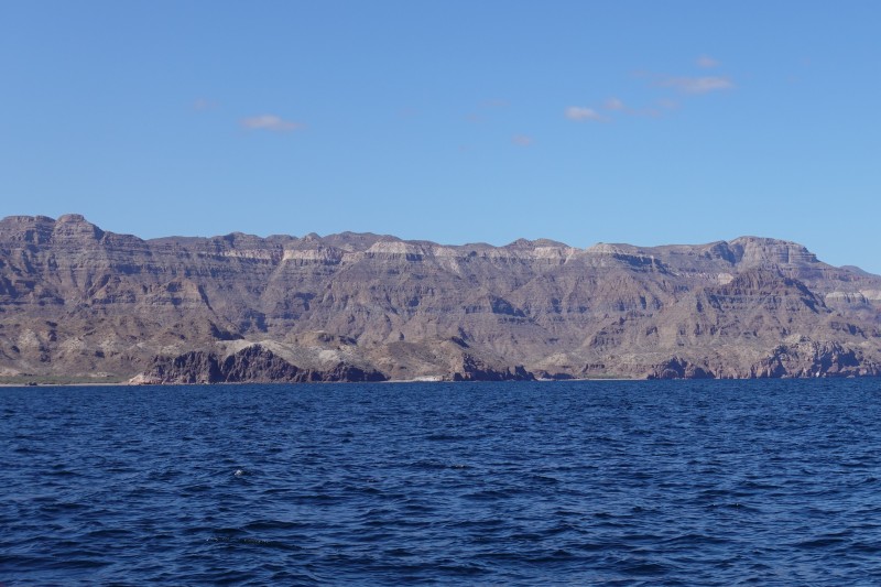Back in Mexico, the boat was stocked up with food and our friend Maria came for a visit from Denmark. We left Puerto Escondido and went south towards La Paz. Striped mountains along the way: