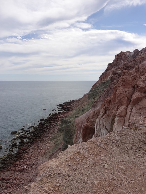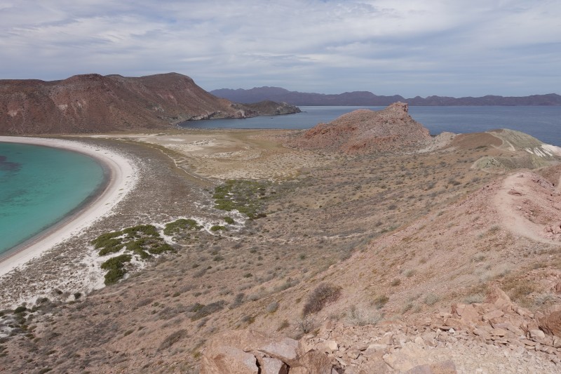 Next we went to San Francisco Island a little further to the south. It has a short hike along the crest of the hills around the bay with spectacular views of the scallop-shaped bay and rocks of vibrant red and green: