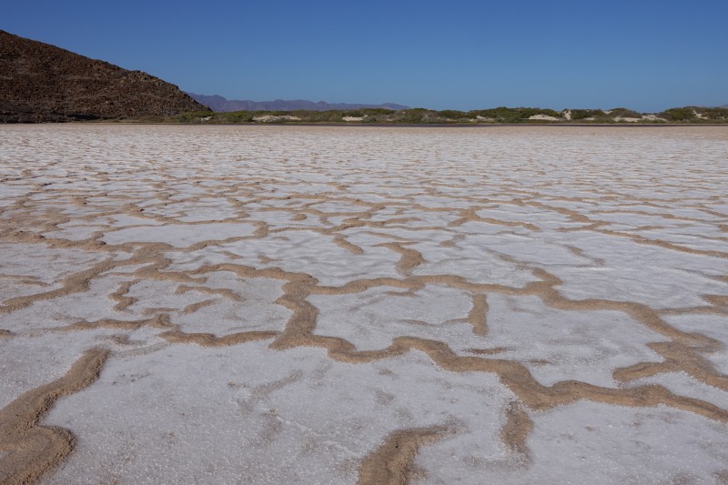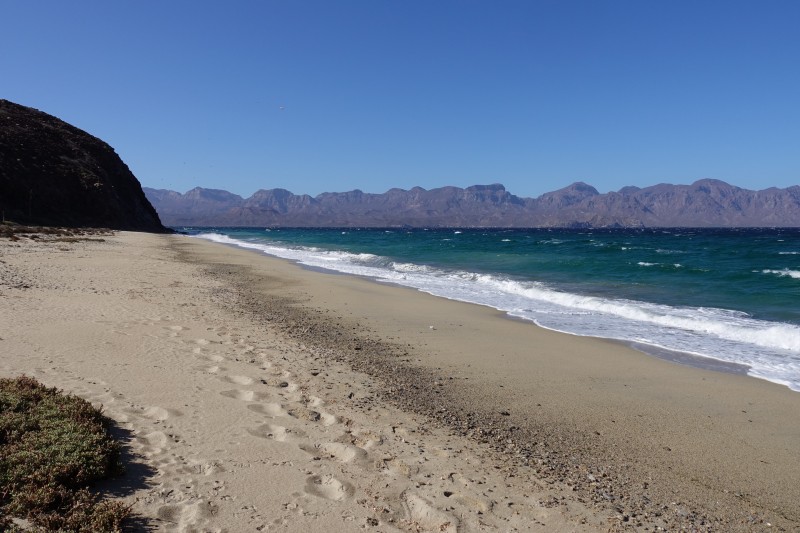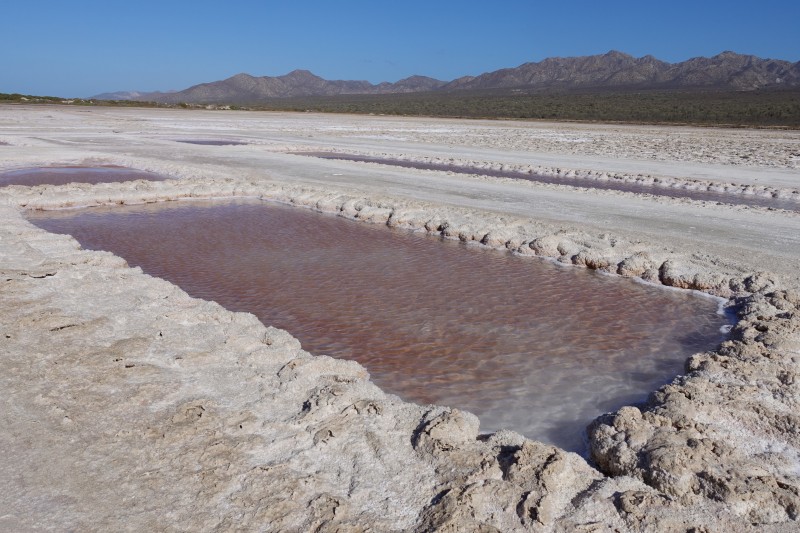 Across from the salt flats was a beach overlooking the Baja mountains: