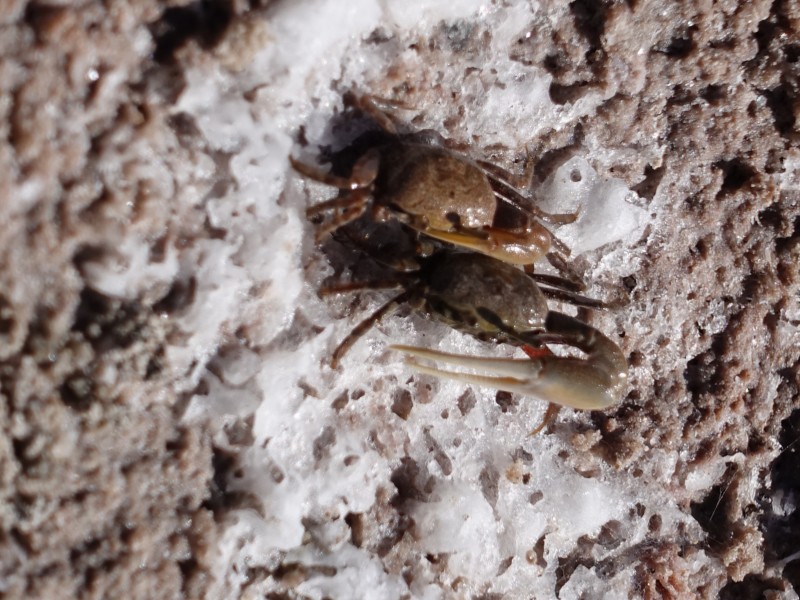 Lots of tiny fiddler crabs were running around on the drying salt: