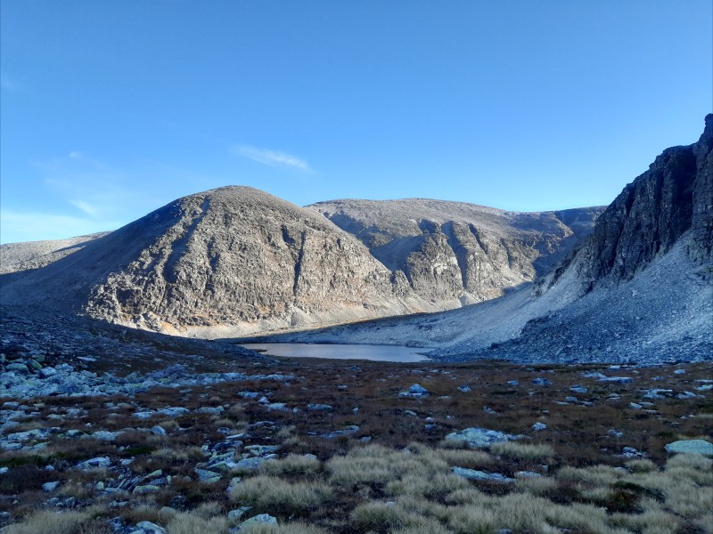 Getting down from Digerronden was slow and tiring because of all the loose rocks. Once we made it to the valley, we still had 12.5 km to hike back to camp. Here is a picture from the way back: