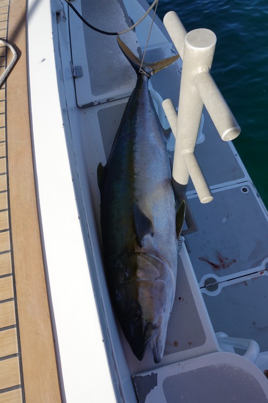 At the anchorage at San Marte we met Harry, a young free diver on a solo kayaking trip from Loreto to La Paz. After arriving at San Marte he went out with his harpoon and caught a large yellowtail jack: