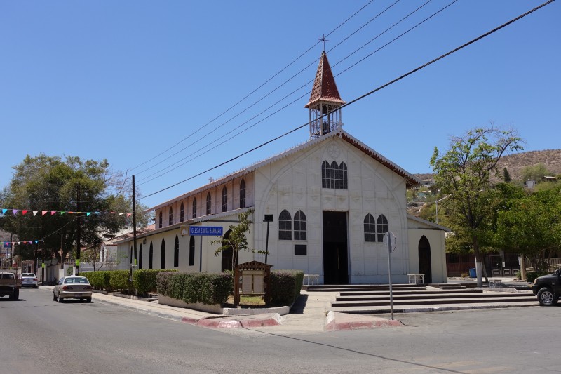 The interesting thing about the church is that it allegedly was designed by Gustave Eiffel of Eiffel Tower fame. It was designed in 1884, built in 1887 and displayed in the World Fair in Paris in 1889. The idea was that the church was easy to assemble and disassemble and could be shipped anywhere. This would allow churches to easily be put up in the many French colonies. Only this one was ever built. After the world fair, the church was put in storage in Brussels and then bought by the Compagnie du Boleo to be put up in Santa Rosalia as the church of Santa Barbara.
