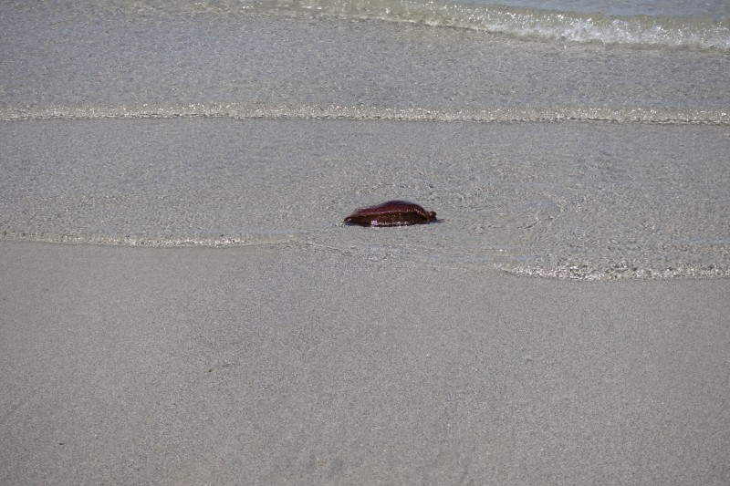 We went ashore for a short hike across the island to look out on the beach at the other side and found these things rolling in the waves: