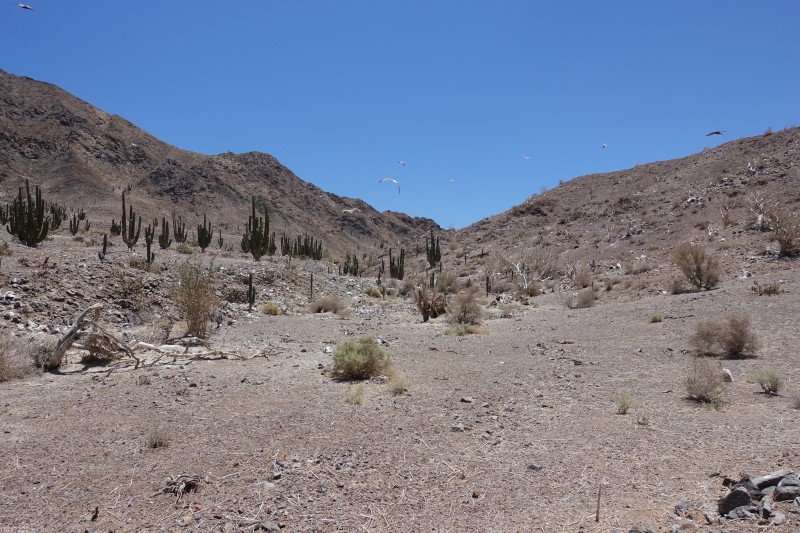 We had to cut the hike short and retreat to the beach to avoid upsetting all the birds but were able to get a picture of a few young pelican hiding in the shade of a cactus.